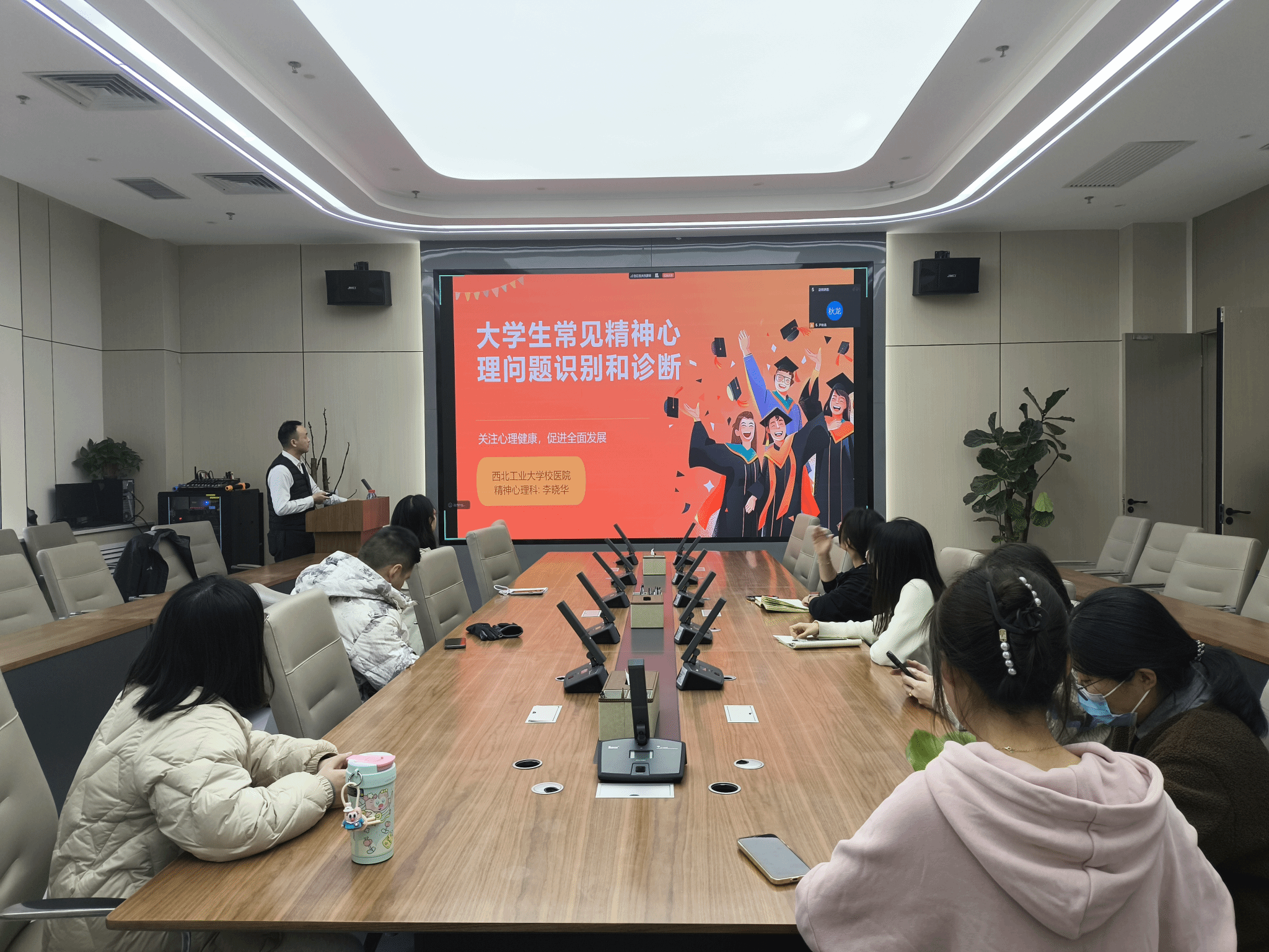于11月26日下午在学院B107会议室成功举办心理健康专题培训讲座。本次讲座特邀西北工业大学校医院心理科主治医师、心理治疗师李晓华医生,作题为《大学生常见精神心理问题的识别和诊断》的专题报告。讲座由学院研究生教学秘书文苗苗主持,学院部分师生参加了培训。